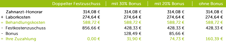 Seit 2005 werden Regelleistungen von den gesetzlichen Krankenkassen durch einen befundorientierten Festzuschuss bezuschusst. Zusätzlich erhalten Sie von Ihrer gesetzlichen Krankenkasse einen Bonus, wenn Sie die vorgesehenen zahnärztlichen Kontrolltermine einhalten und in Ihr Bonusheft eintragen lassen. Für Patienten mit geringerem Einkommen gilt die sogenannte Härtefallregelung. Diese Patienten erhalten den doppelten Festzuschuss.