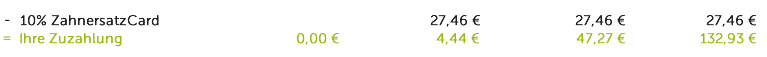 Patienten, die Inhaber der *ZahnersatzCard-Müller sind, erhalten zusätzlich 10% Nachlass auf die zahntechnischen Laborkosten.